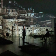 With reference to the Cinquecento art work Galleria delle Carte Geografiche – still the largest map representation in the world to be found in the Vatican Museums – makropolis outlines the model of a global community beyond territorial borders. Within the hybrid structure of the Galleria delle Carte Geografiche the performers encounter battle scenes from the Punic Wars, accompany Cicero through ancient necropolises, encounter Buckminster Fuller’s visionary world map designs and find the tomb of the Greek mathematician Archimedes in the courtyard of a Sicilian hotel. Thus they unfold a history of macropolises that ranges from ancient cosmology and mathematics to Jorge Luis Borges‘ cartographic concept of science and John Cage’s enduring world sound map thinking; from the democratically constituted Greek polis to the dystopian billion-strong macropolises in science fiction.